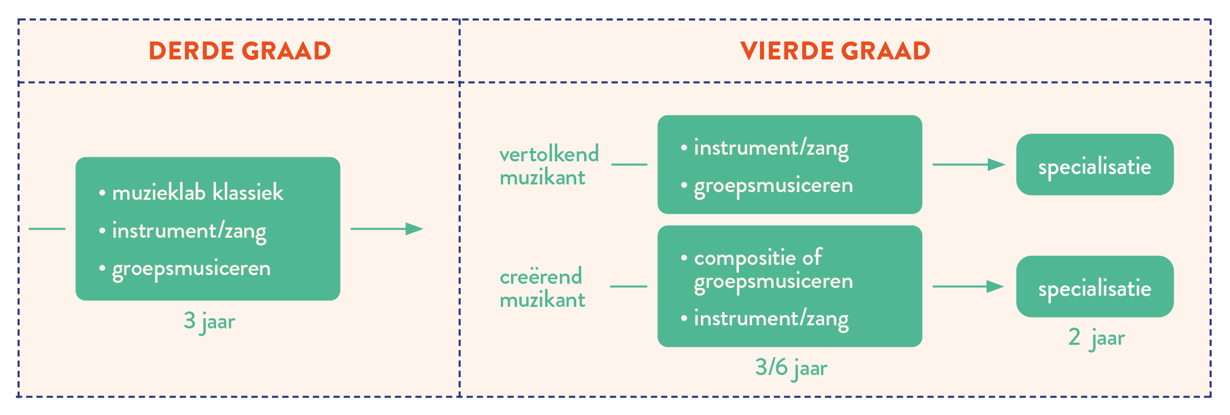 Of wanneer je meer aanleg hebt voor improviseren en componeren kies je creërend muzikant (1u instrument + 1u compositie of orkest of ensemble).