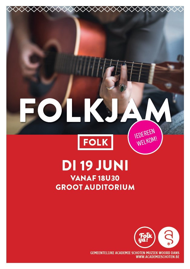 Folk Yeah! Kinderbal en Jam op 19 juni!Kom mee dansen en jammen op 19 juni:voor de kinderen start op feest om 17u00, de jam is aansluitend om 18u30.Iedereen is welkom! Gratis toegang. DelenTweetLinkedinE-mail