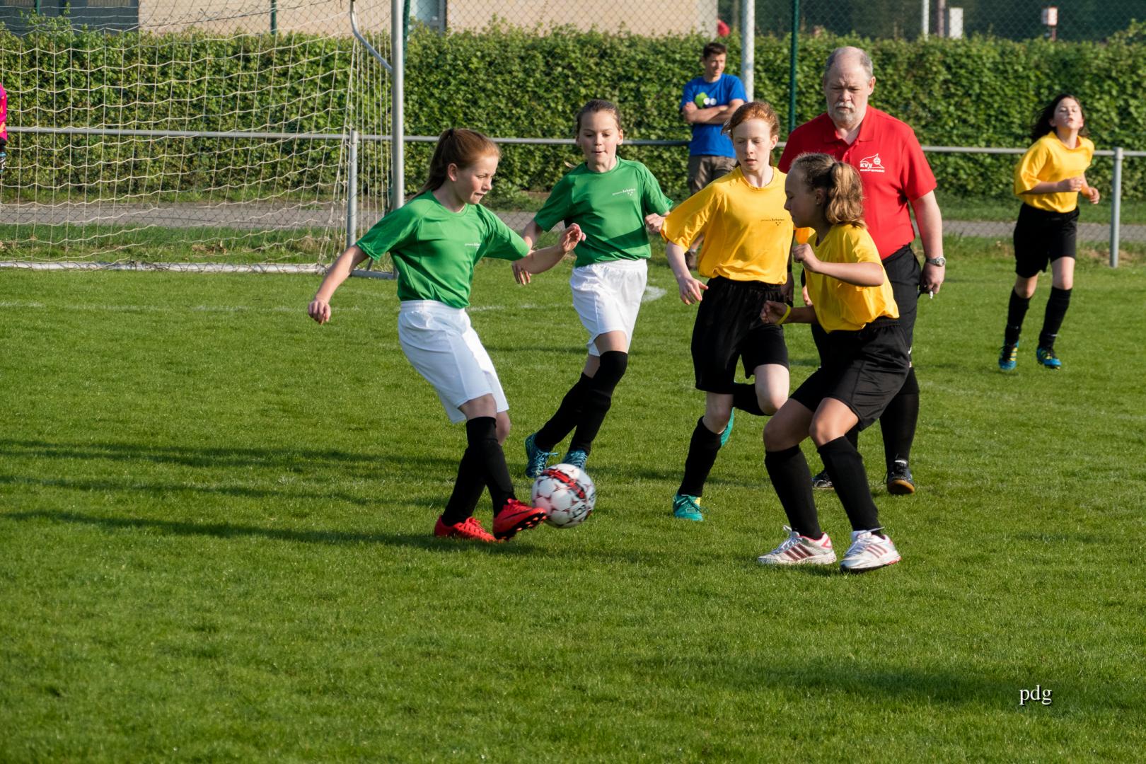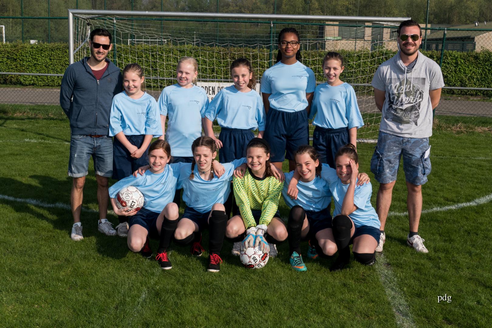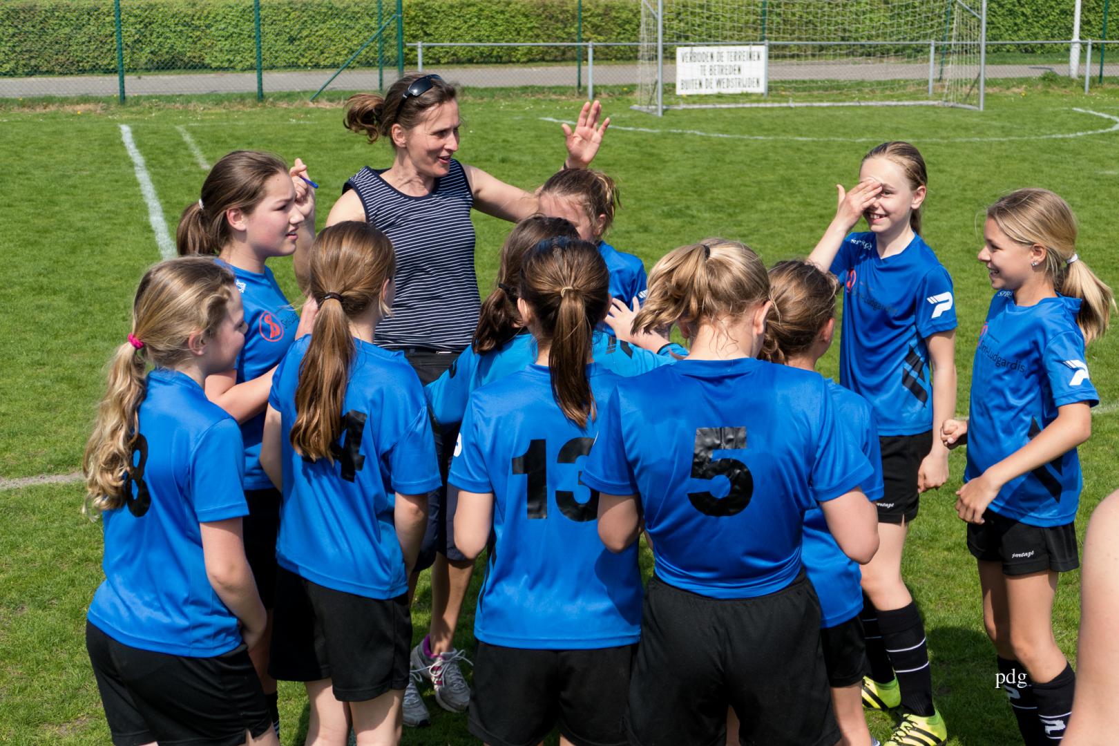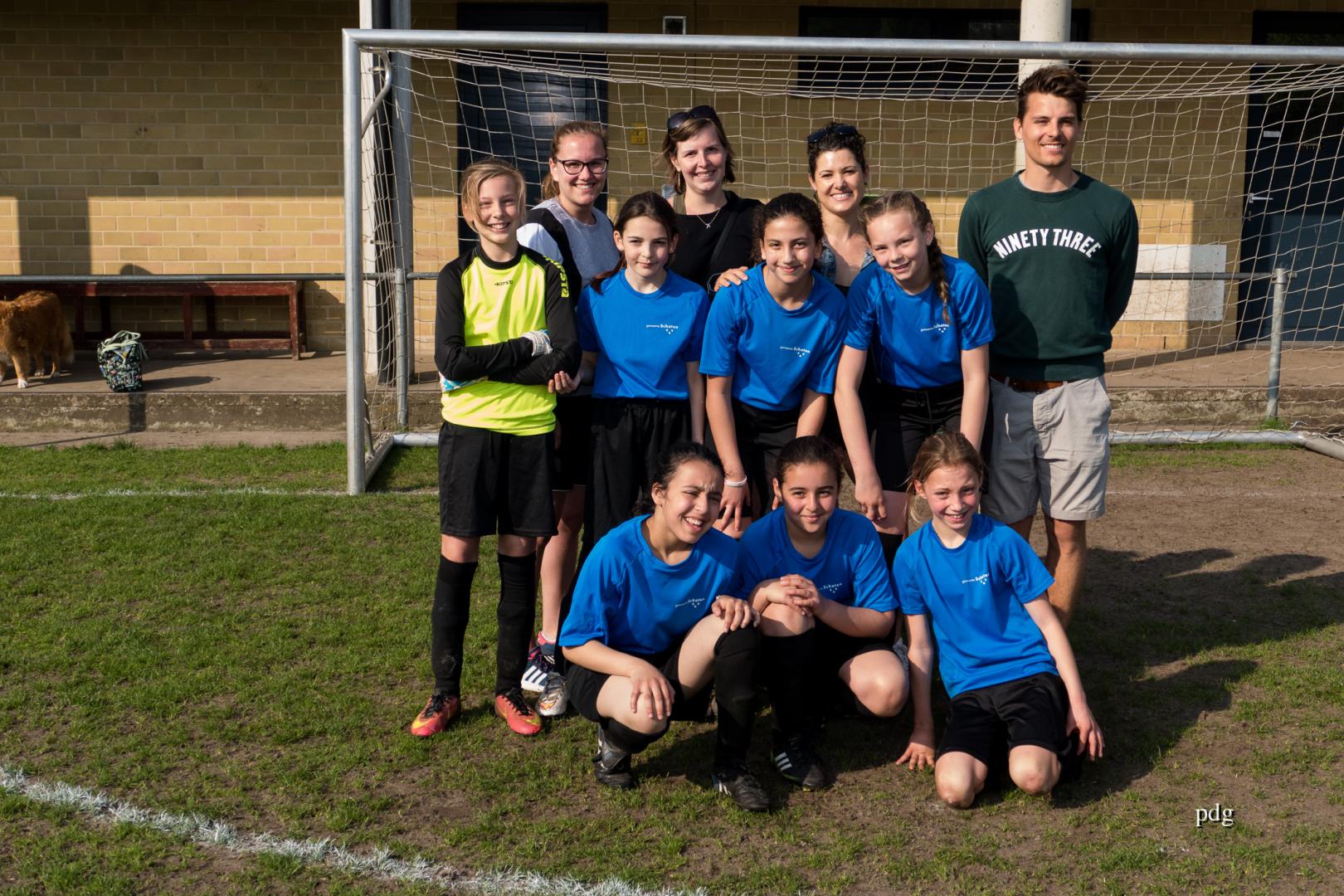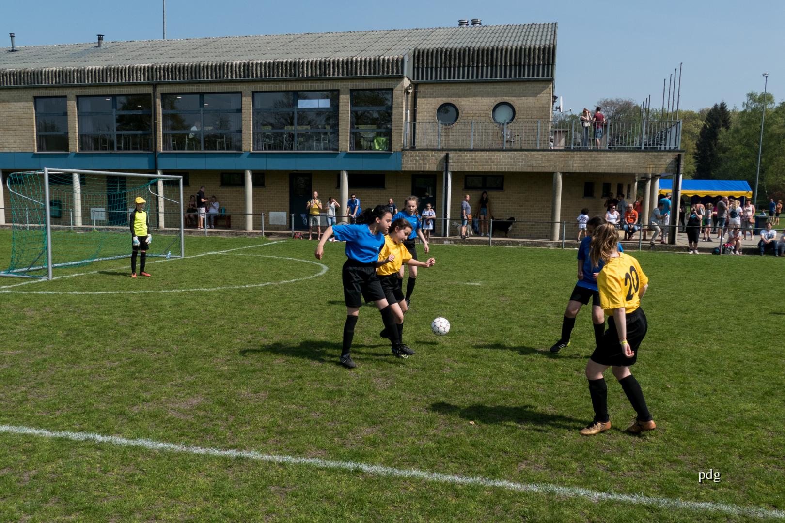 De meisjes speelden voor het eerst in een andere spelvorm. 5 tegen 5 op een kwart van een veld. Er werden doelpunten gescoord bij de vleet.