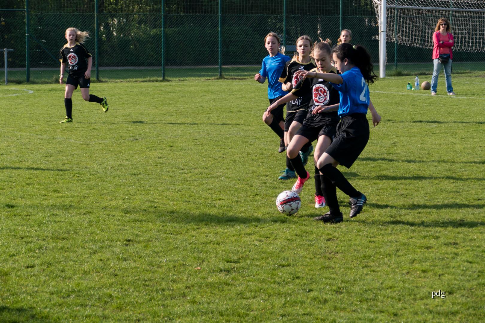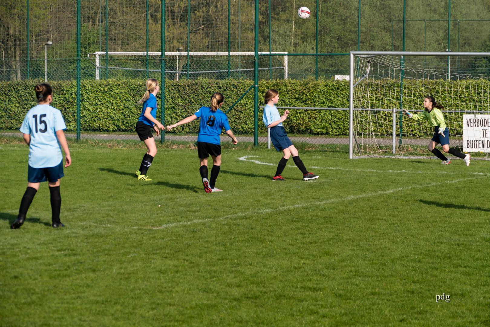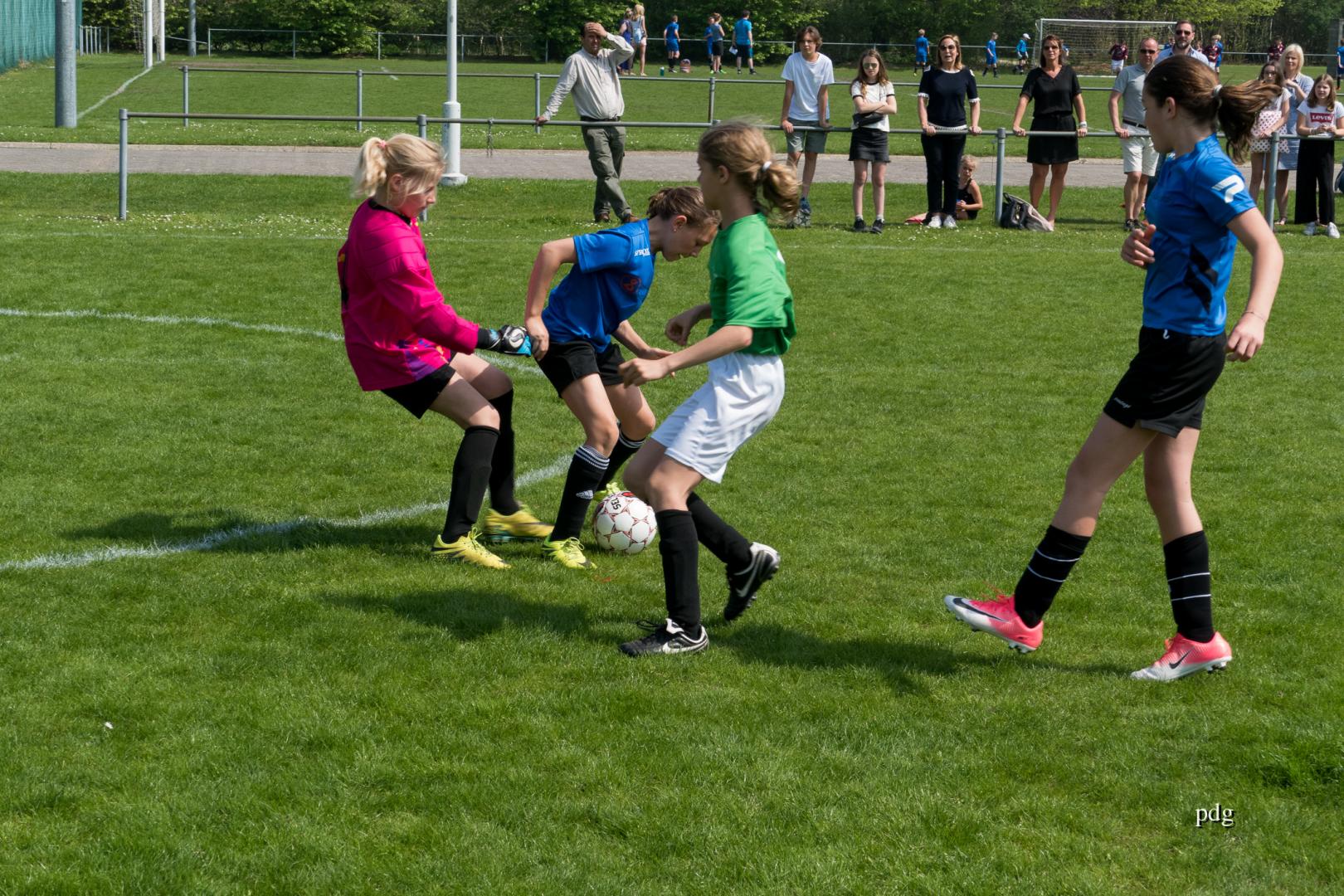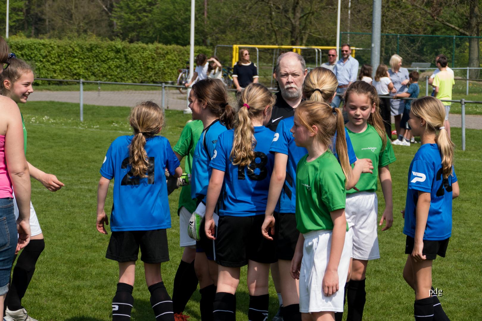 De meisjes speelden voor het eerst in een andere spelvorm. 5 tegen 5 op een kwart van een veld. Er werden doelpunten gescoord bij de vleet.