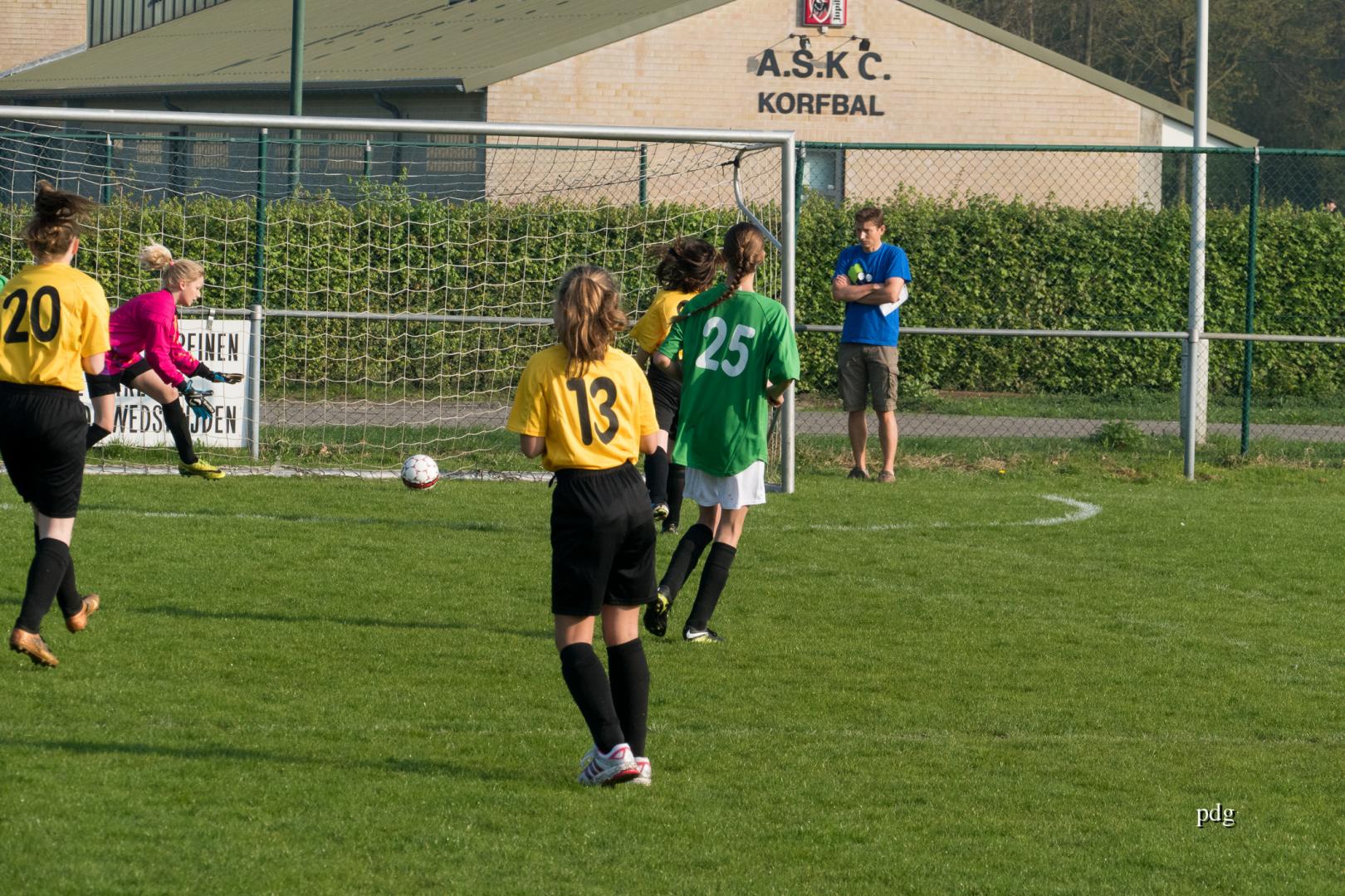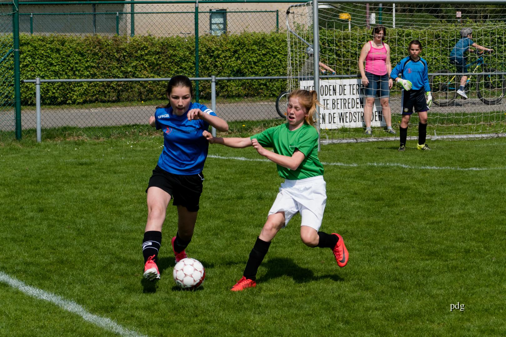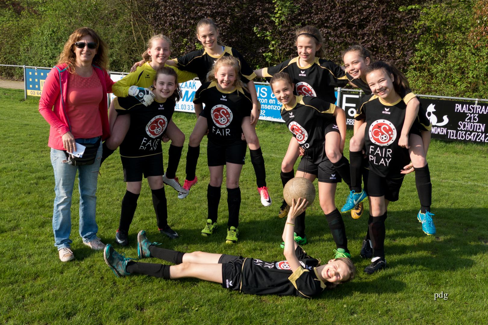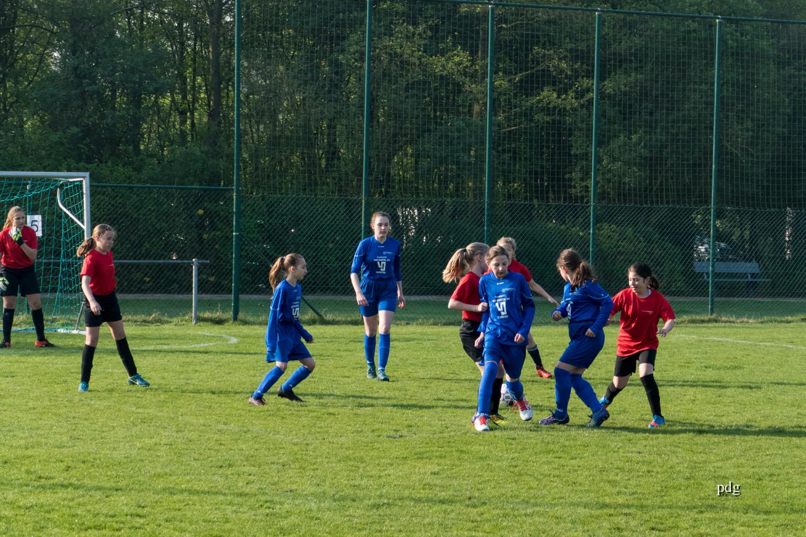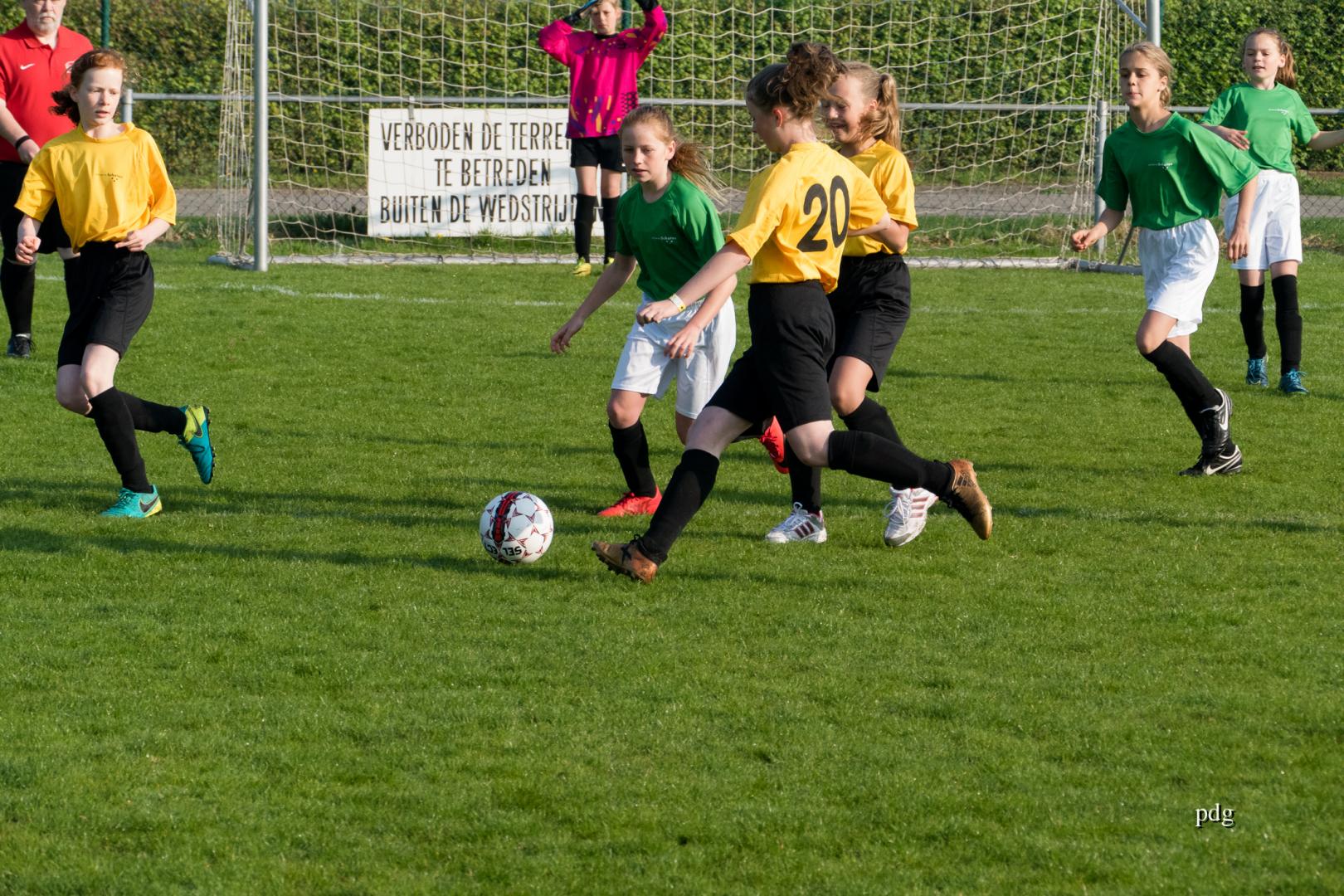 De meisjes speelden voor het eerst in een andere spelvorm. 5 tegen 5 op een kwart van een veld. Er werden doelpunten gescoord bij de vleet.