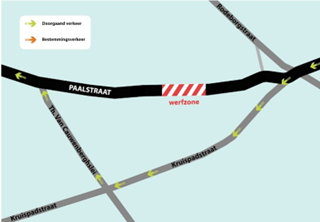 Ter hoogte van Paalstraat 116 is een wegverzakking vastgesteld in het wegdek. Dit komt door schade aan de onderliggende riolering. Hierdoor spoelt de grond weg. Deze herstelling gebeurt in opdracht en toezicht van de rioolbeheerder Waterlink, uitgevoerd door een externe aannemer.