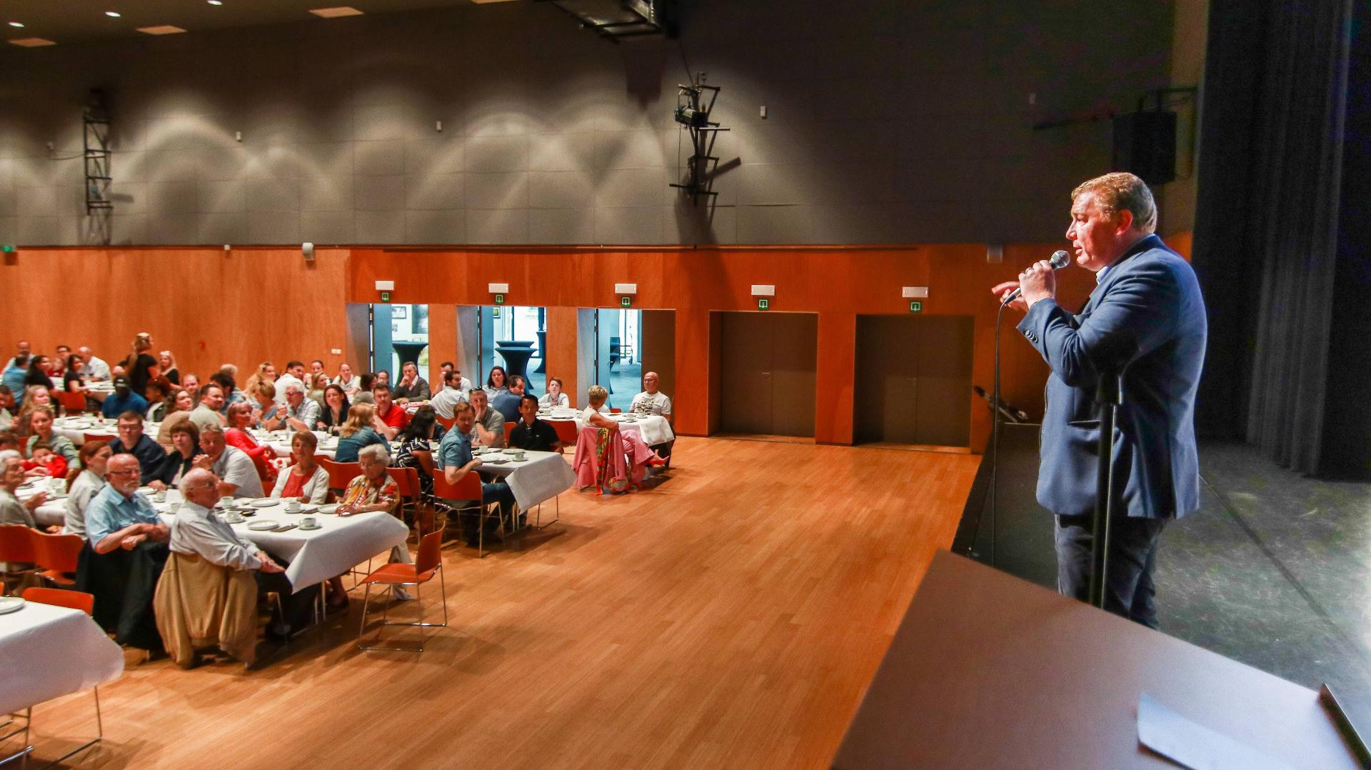 Na ontvangst met een glaasje cava of iets fris volgde het heerlijke ontbijtbuffet. Burgemeester Maarten De Veuster stelde Schoten voor aan de hand van enkele introductiefilmpjes. Nadien kregen de gloednieuwe Schotenaren ruim de tijd om elkaar en de gemeente te leren kennen op een receptie met infotafeltjes.
