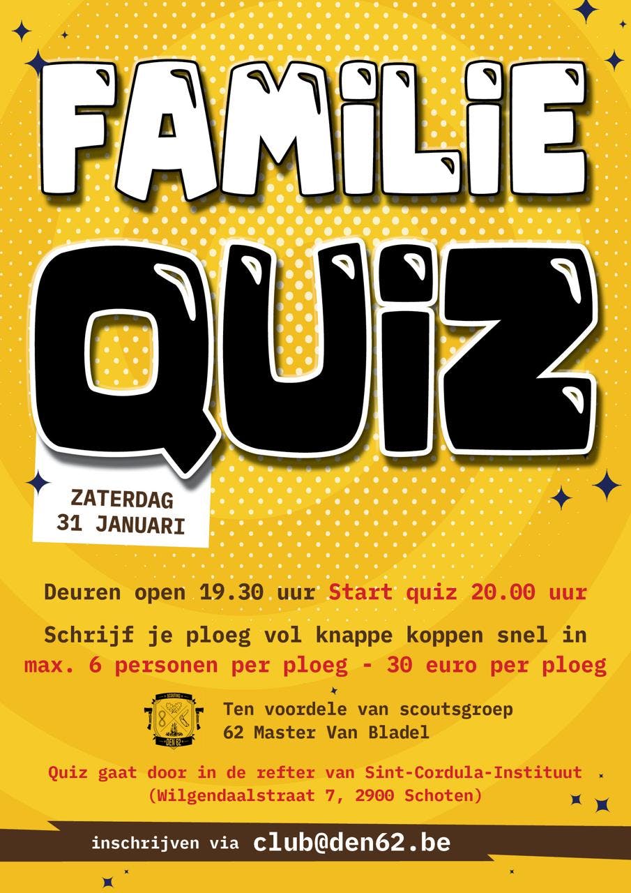 Op 31 januari 2026 organiseren we met de oudervereniging van de scoutsgroep 62ste Master Van Bladel opnieuw een leuke familiequiz!