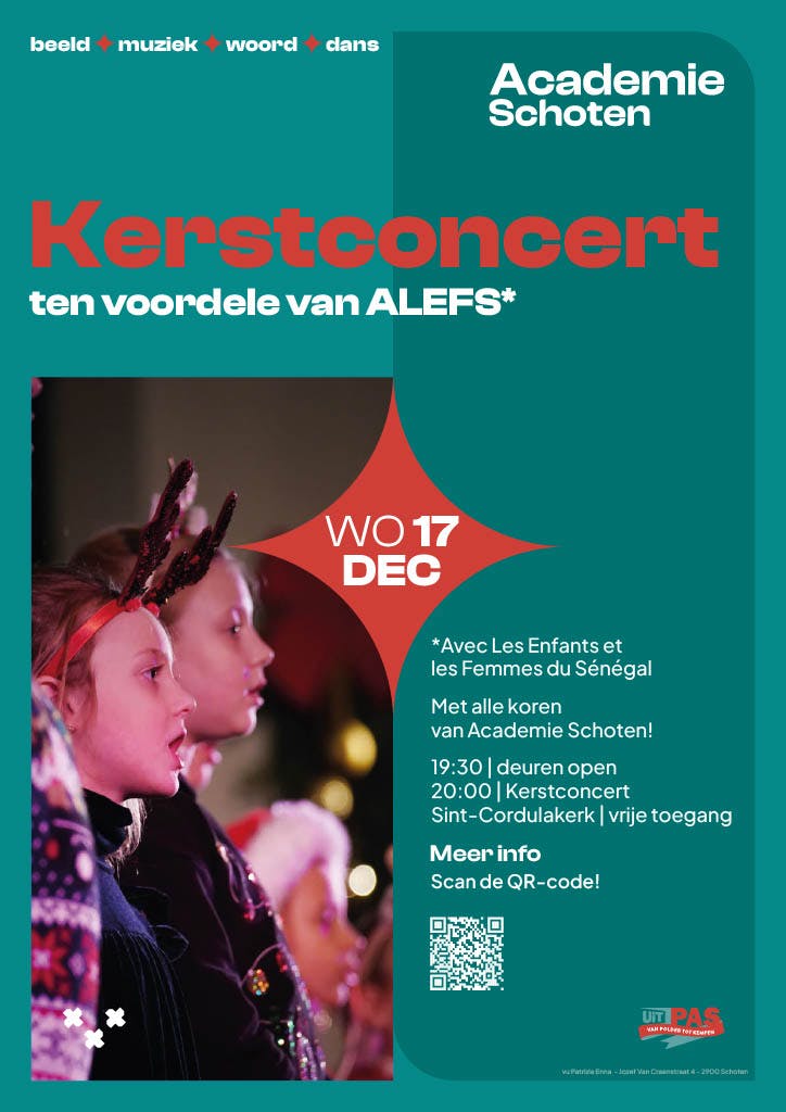 Kerstconcert ten voordele van ALEFS (Avec Les Enfents et les Femmes du Sénégal). Met alle koren van de Academie Schoten!
